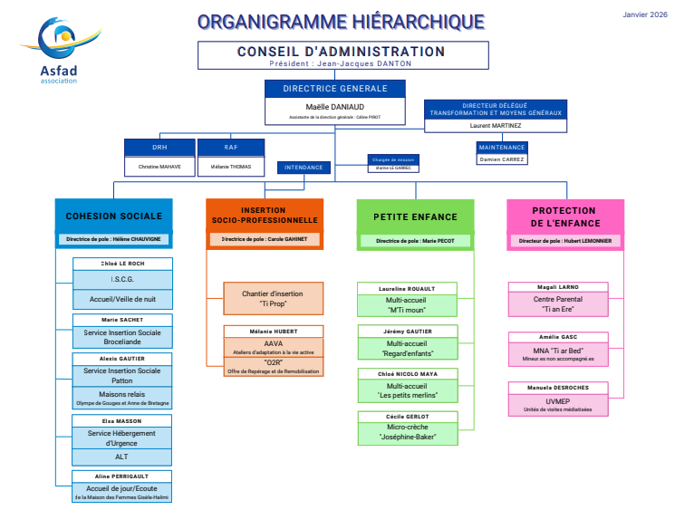 HomeOrganisation Organisation Organigramme institutionnel Organigramme hiérarchique Charte informatique de l’Asfad : ICI Contrat d’engagement républicain : ici